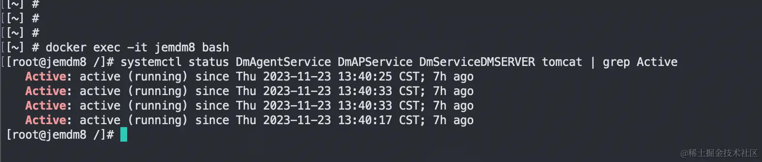 systemctl status DmAgentService DmAPService DmServiceDMSERVER tomcat | grep Active