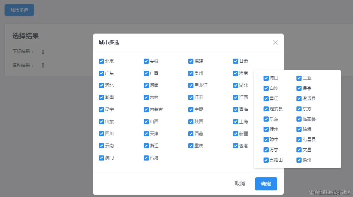 ⑥:展示类型,指勾选框的样式,默认方块展示,可设置按钮样式。
