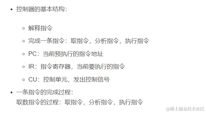 <5> 控制器,控制器是计算机的指挥中心,有其指挥各部件自动协调第进行工作,现代计算机将运算器和控制器集成到一个芯片上,合成为中央处理器,简称CPU。有程序计数器(PC)、指令寄存器(IR)和控制单元(CU)。