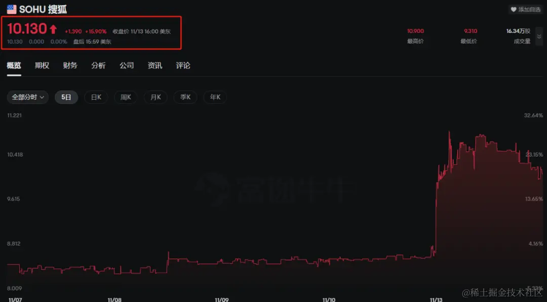 近日,搜狐发布了2023年第三季度财务报告。其中,最为引人关注的是,搜狐宣布了为期两年,总金额最高为8000万美元的股票回购计划。这一回购计划无疑给了投资者信心,为回暖中的中概股板块注入一剂“强心针”。财报发布当日,搜狐股价单日大涨15.9%,收报每股10.13美元。