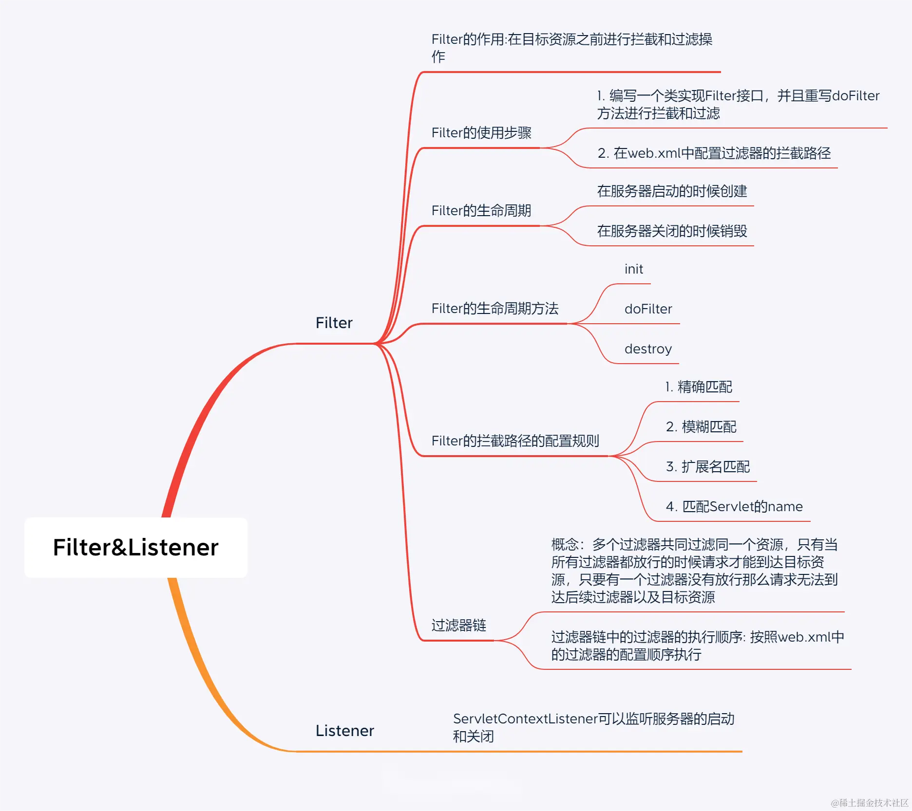 - doFilter()方法用于调用Filter链上的下一个过滤器,如果当前过滤器为最后一个过滤器则将请求发送到目标资源。