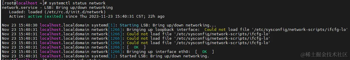 结果展示,它并没有调用systemctl执行,这是因为network服务是属于SysV init类型的,即配置服务路径是在/etc/rc.d/init.d/network下。
