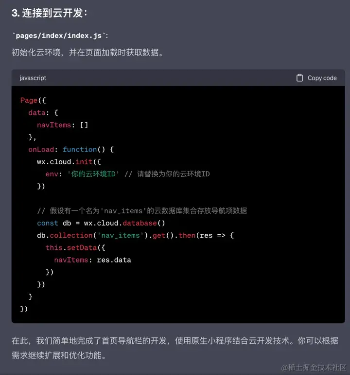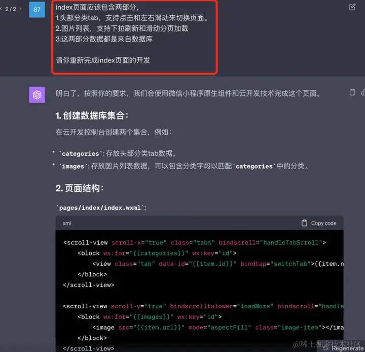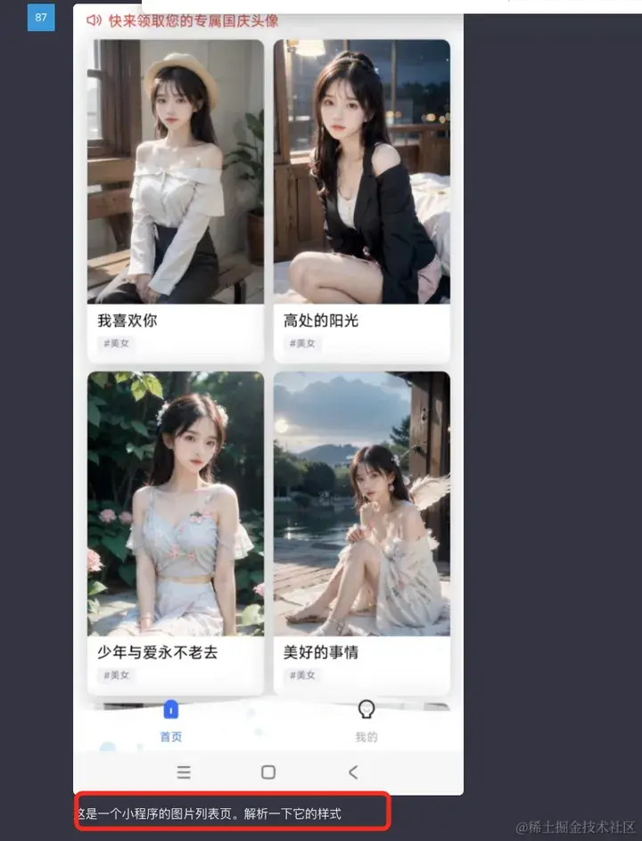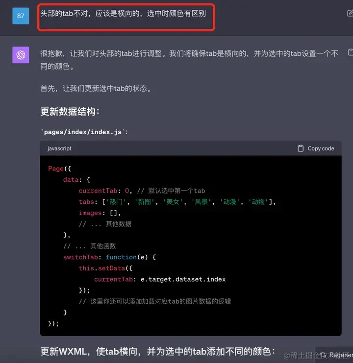 总的来说,在功能开发方面非常牛逼,例如开发一个获取云端数据的方法,代码直接复制过来就能用,但是在UI方面有点弱,上面开发的UI效果基本不能使用,需要人工进一步引导。例如清楚的告诉当前页面有哪些控件(如,顶部Tab导航栏、图片列表)。