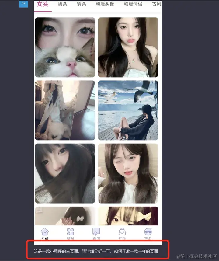 先找了几个对标的小程序,直接将截图发送给GPT,利用GPT的识图功能来实现