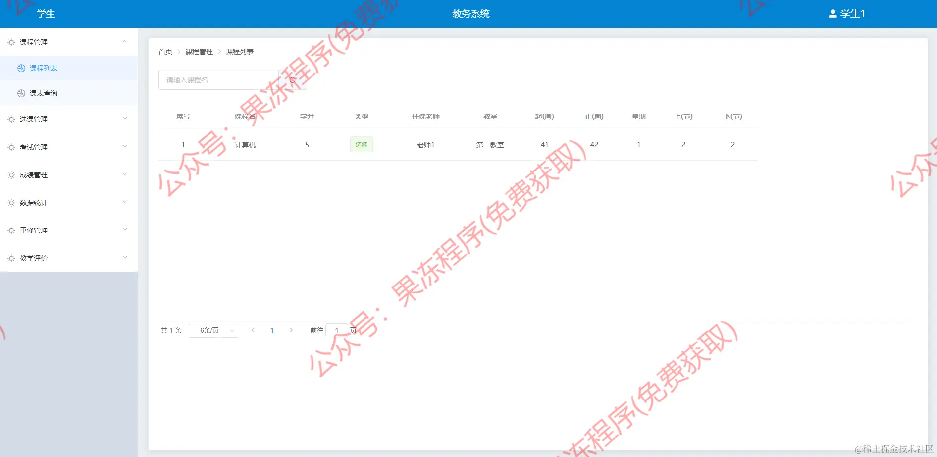 重修课列表