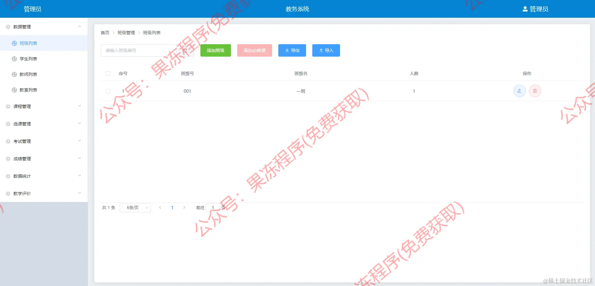 该项目是一个教务管理系统,角色分为管理员,教师,学生三个角色,具体功能菜单如下: