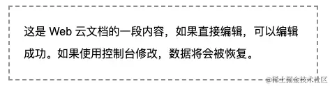 这是 Web 云文档的一段内容,如果直接编辑,可以编辑成功。如果使用控制台修改,数据将会被恢复。