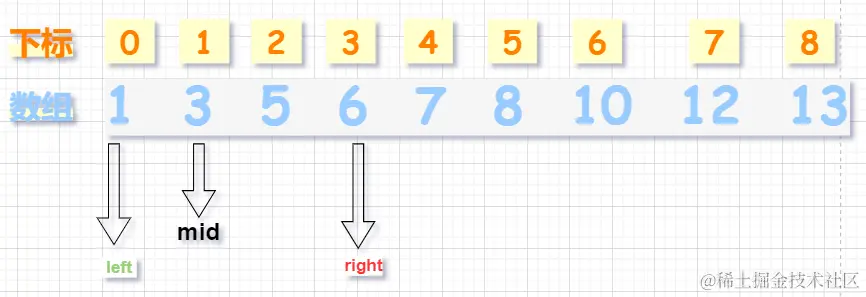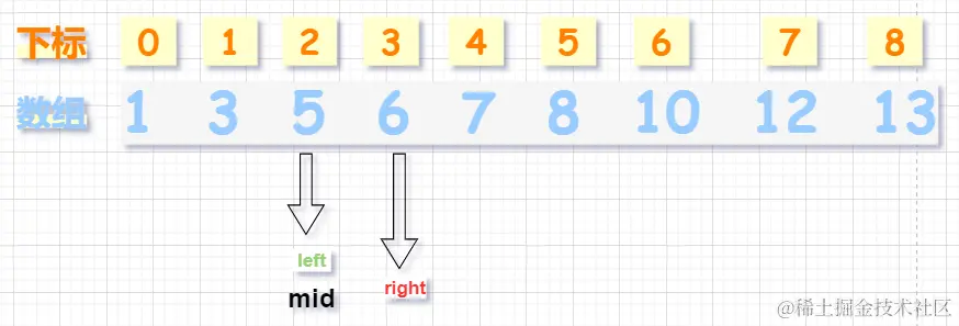 let mid = Math.floor((left + right) / 2) //向上或向下取整都可以