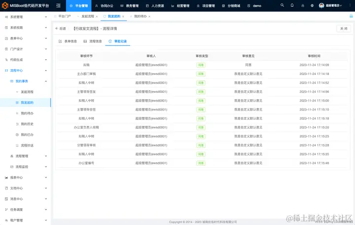 MISBoot低代码开发平台支持“我发起的”功能,用户可以方便地查看自己发起的流程。这个功能有助于用户对自己的工作进行跟踪和管理,同时也方便了与他人的沟通和协同。用户可以随时了解自己发起的流程进展情况,并及时做出相应的反馈和记录。
