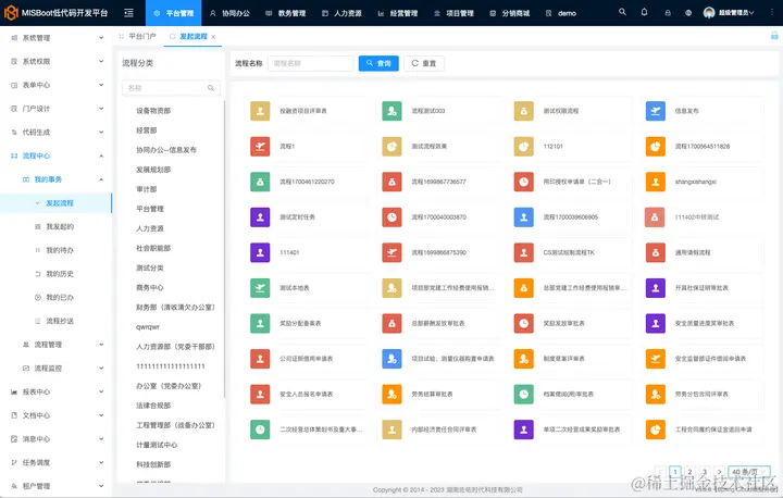 为了方便管理和组织,MISBoot低代码开发平台支持对流程进行分类。用户可以根据自己的需求和工作特点,将流程进行分类归档,便于后续的查找和使用。这样的设计使得流程的管理更加灵活和高效。