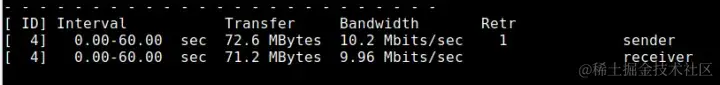 iperf3是一款带宽测试工具,它支持调节各种参数,比如通信协议,数据包个数,发送持续时间,测试完会报告网络带宽,丢包率和其他参数。