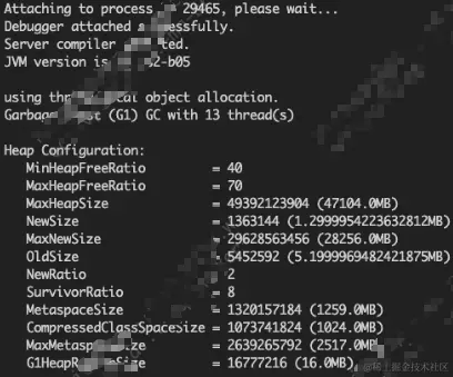 执行jmap -heap 29465
