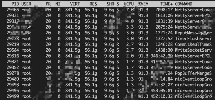 top -Hp pid查看线程的资源占用情况