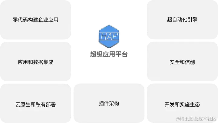 超级应用平台是一个融合多元能力的企业数字化产品,具备广泛的需求适应性,能够满足不同规模和行业的企业数字化核心需求。经过持续八年多的研发,HAP已经在所有行业和规模的客户应用中得到认可。我们将超级应用平台的核心能力概括为以下七点: