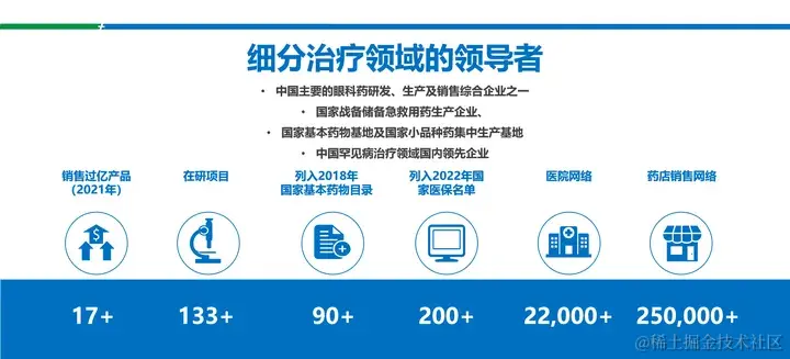 远大医药是一家集药品制剂、医疗器械、抗肿瘤以及原料药、生物健康等业务于一体的综合型科技企业。致力于以创新引领和全球拓展为综合优势。截至今年,在全球拥有 30 多家成员企业。在全国医药工业企业中,排名第 19 位,在化药企业中排名第 24 位,整体规模在整个医药企业中处于比较领先的地位。同时,远大医药也是细分治疗领域的领导者,在眼科用药的产销方面处于相对领先的地位,是国家战略急救用药的生产企业,在基本药物、小品种药、罕见病药等方面也是领先企业。目前,销售过亿的单品有 17 个以上,在研项目超过 133 个。