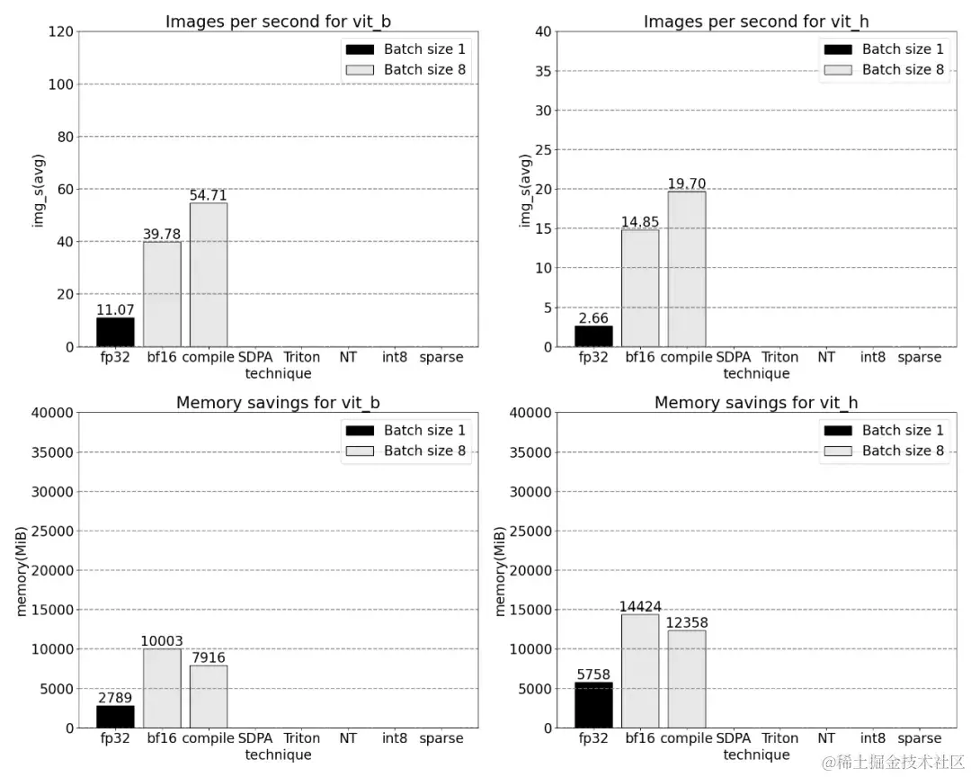 PyTorch 原生特性所带来的吞吐量增加以及减少的内存开销。