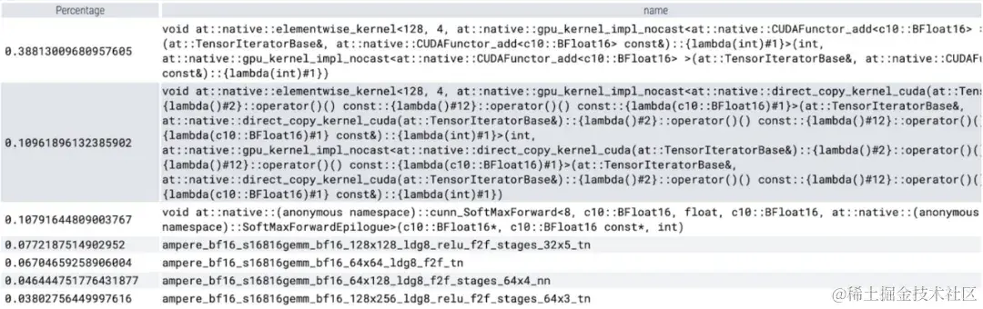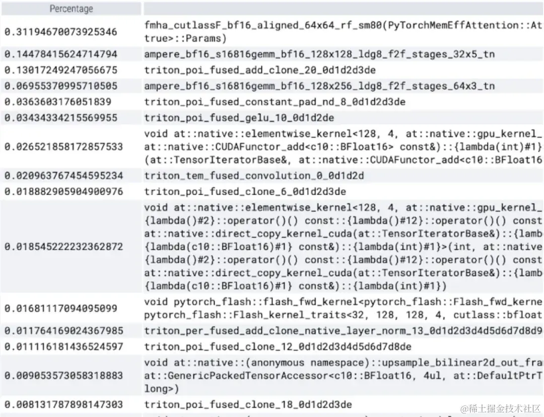 现在可以看到内存高效的注意力内核占用了 GPU 上大量的计算时间: