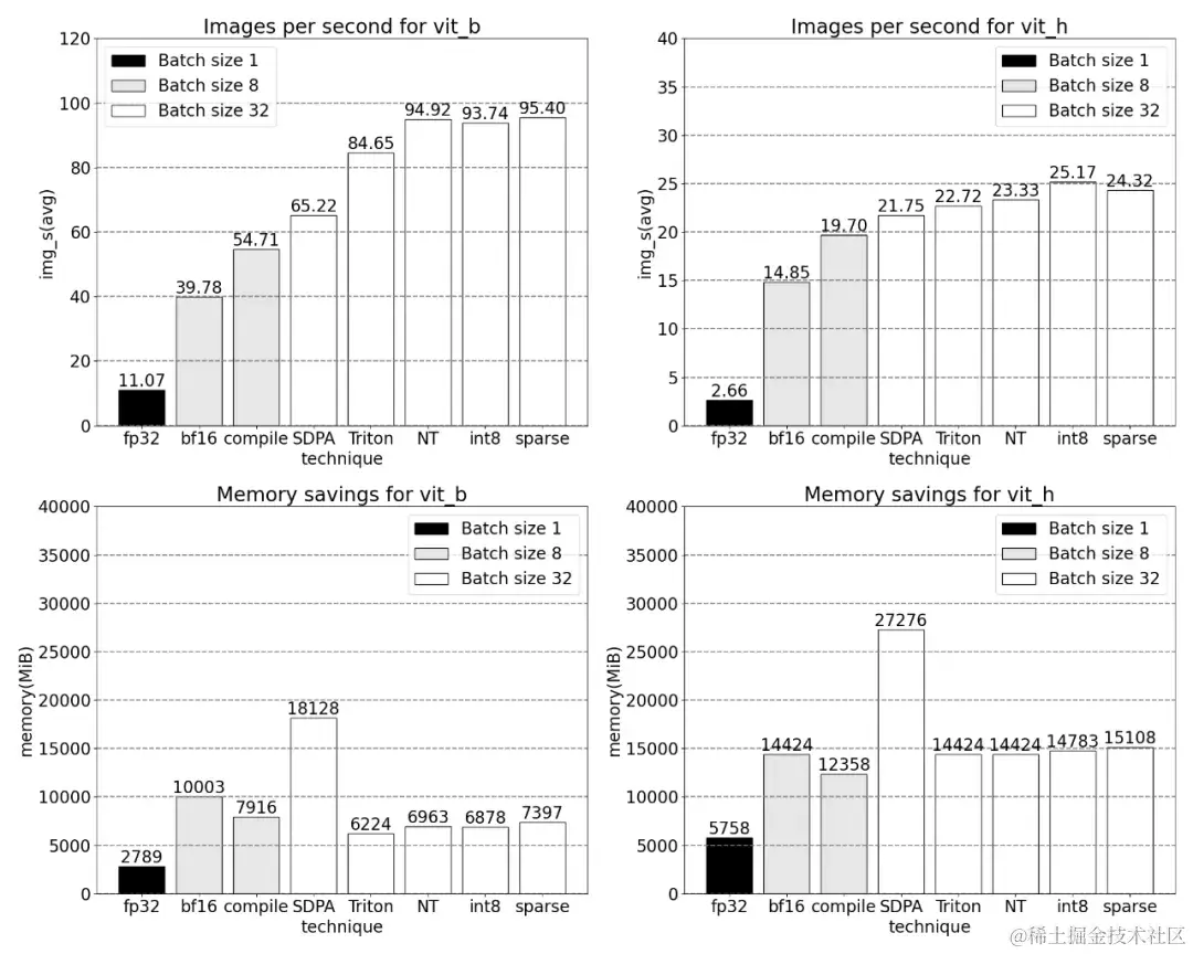 例如本文使用自定义 positional Triton 内核,观察到批大小为 32 的测量结果。