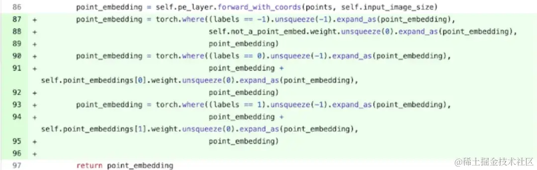 具体来说(参考上图更容易理解,出现的变量名都在代码中),该研究发现在 SAM 的图像编码器中,有充当坐标缩放器(coordinate scalers)的变量 q_coords 和 k_coords,这些变量都是在 CPU 上分配和处理的。然而,一旦这些变量被用来在 rel_pos_resized 中建立索引,这些索引操作就会自动的将这些变量移动到 GPU 上,这种复制会导致 GPU 同步。为了解决上述问题,该研究注意到可以使用 torch.where 重写这部分内容来解决问题,如上所示。