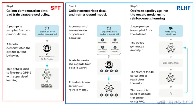 2.这个“配方”——通常被称为三步技术——是由InstructGPT(ChatGPT 的姐妹模型)提出的,自提出以来已被许多强大的 LLM 所采用!