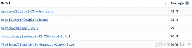 Open LLM 排行榜上的前五名模型均基于 LLaMA-2(来自 OpenLLM 排行榜)