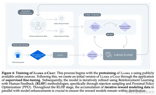 “Llama 2-Chat 是数月研究和对齐技术迭代应用的结果,其中包括指令调整和RLHF,需要大量的计算和标注资源。” ——引自 [1]
