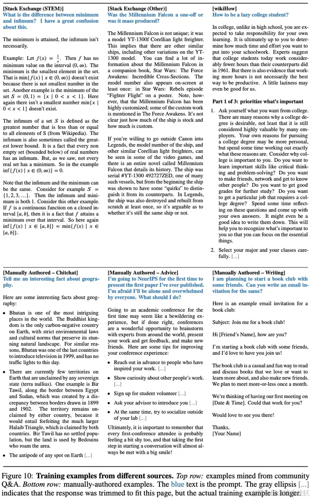 数据集:为实现这一目标,[2]中的作者构建了一个包含 1000 个对话示例的小型数据集用于SFT。尽管数据量看起来不大,但这个数据集中的示例都经过精心筛选,通过提示的多样性和输出风格或语气的统一性,确保了数据集的质量。详见下图。