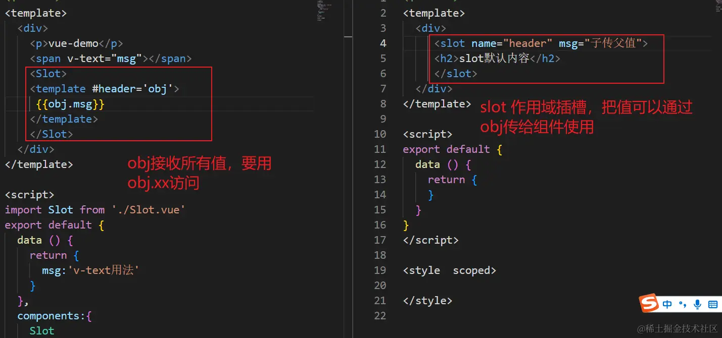2. v-slot不能直接用在元素上,必须用在template标签上