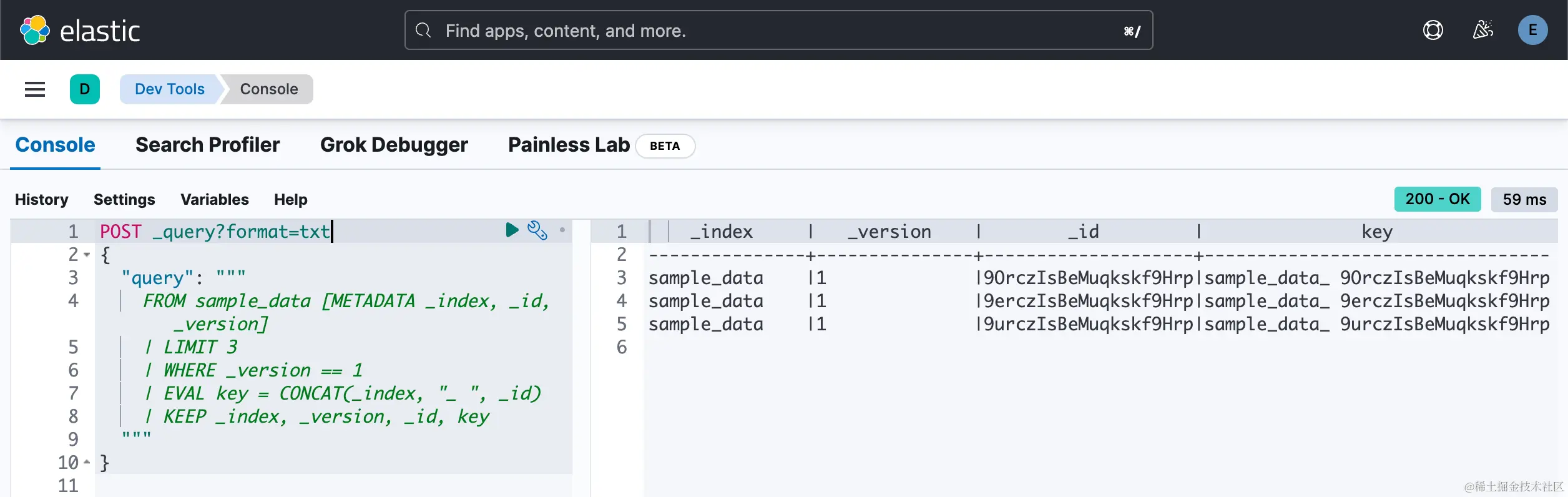 4. FROM sample_data [METADATA _index, _id, _version]