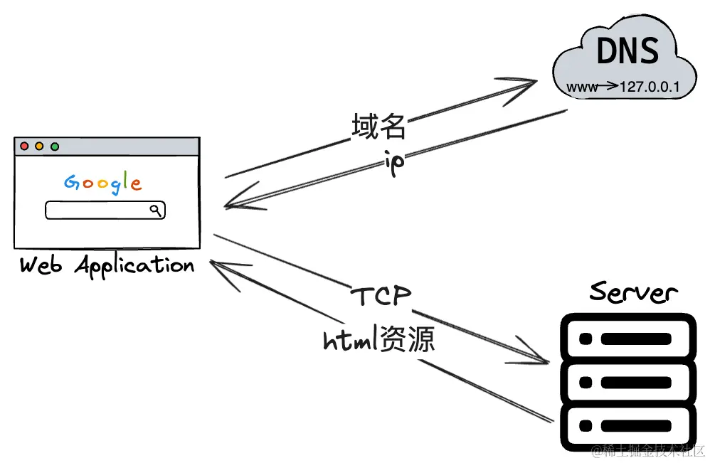 当你通过在地址栏输入一个 URL、点击一个链接、提交表单或者是其他的行为。 浏览器就需要根据输入去查询要访问的资源,域名需要通过域名服务器(DNS)查询域名所对应的ip地址并返回终端,才能做后续的资源访问