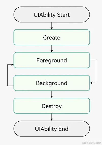 UIAbility的生命周期包括Create、Foreground、Background、Destroy四个状态,如下图所示。