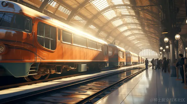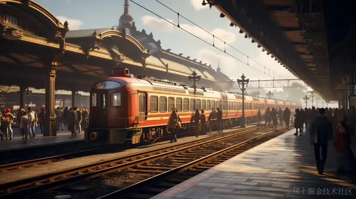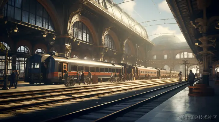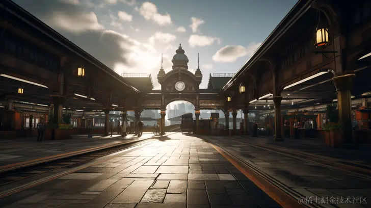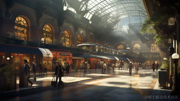 例子关键词:A bustling train station in the style of unreal engine