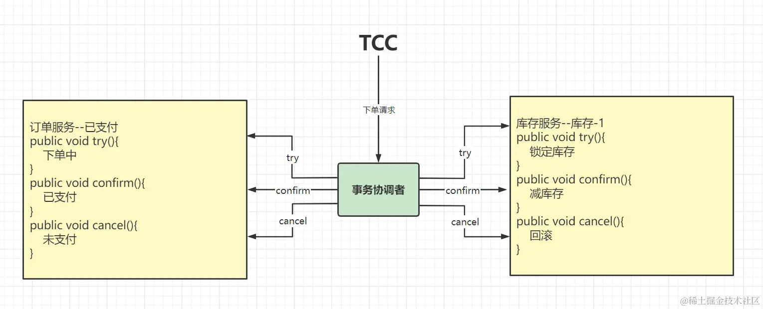 TCC模式:最终一致的分阶段事务模式,有业务侵入。