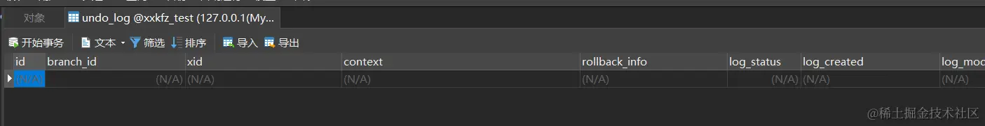断点继续往下走,触发异常,,已插入的数据被回滚,且undo_log被清空,分布式事务回滚正常。