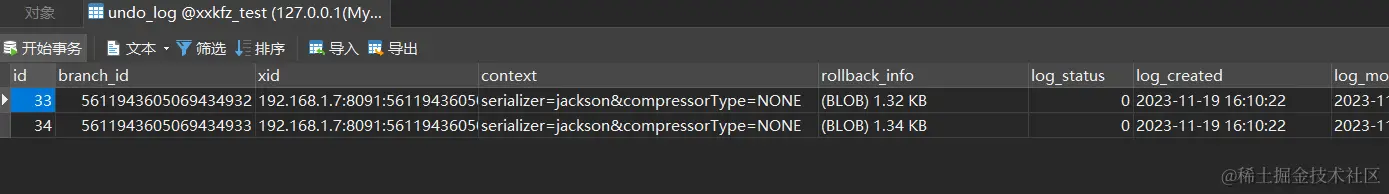 seata 控制台全局事务和分支事务回滚日志