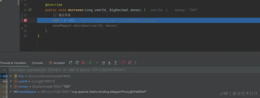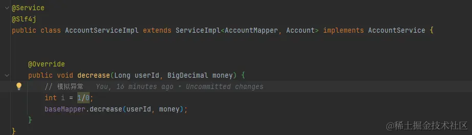 代码修改2:在账户服务中模拟异常。
