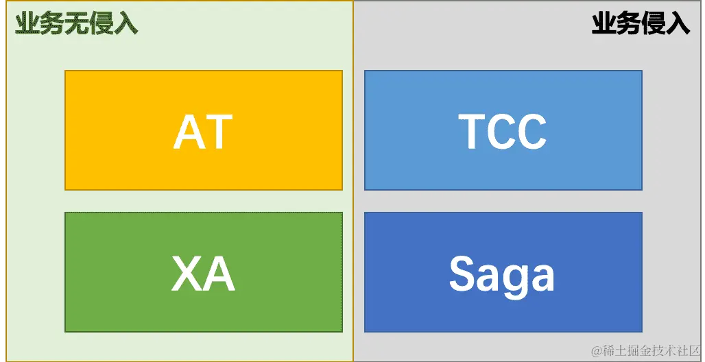 XA模式:强一致性分阶段事务模式,牺牲了一定的可用性,无业务侵入。