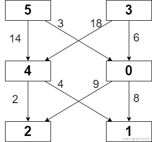 输入: grid = [[5,3],[4,0],[2,1]], moveCost = [[9,8],[1,5],[10,12],[18,6],[2,4],[14,3]]