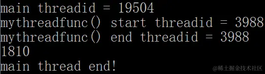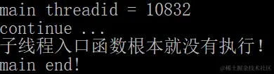 因为主线程输出完主线程执行完毕2后就退出了,因此上面程序的9、10行即我的线程执行完毕了3和我的线程执行完毕了4没有办法输出。子线程后续被c++运行时库接管。