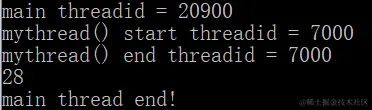 cout << "mythread end and mythread's thread id = " << std::this_thread::get_id() << endl;