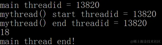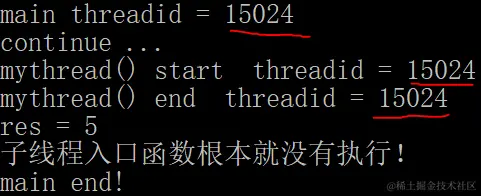 auto res = result.get();//此时才会去调用被延迟的mythread线程入口函数,但是是在主线程中调用的!