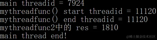 auto res = result.get();//虽然没执行完成,但是我还可以用.get()成员函数等待这个线程入口函数执行完毕!