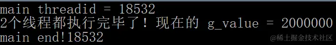 //cout << "2个线程都执行完毕了!现在的 g_value = " << g_value << endl;