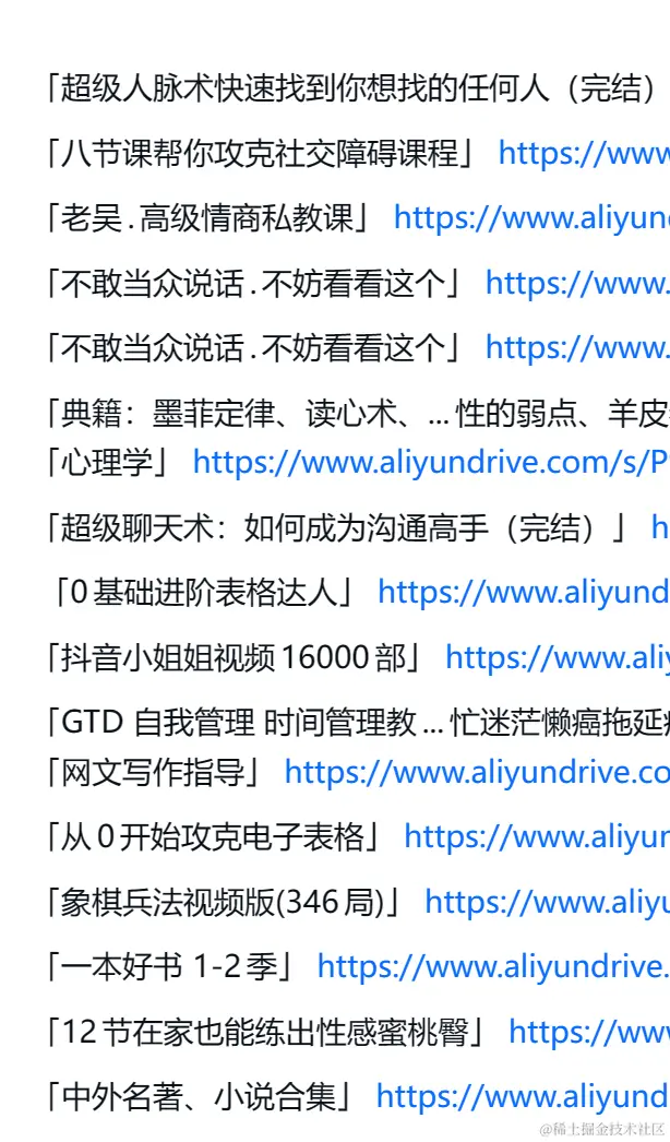 这里还有上千个阿里云盘分享链接,大多数也都是合集的那种,一共算下来有 2400T 的资源