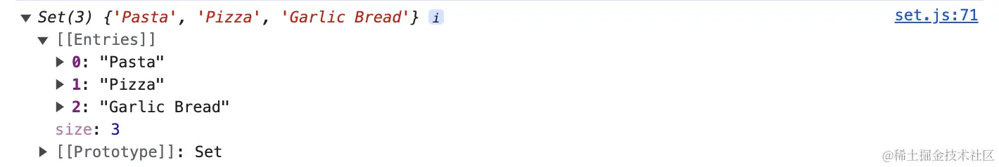 ordersSet.add('Garlic Bread'); //在ordersSet集合中添加元素