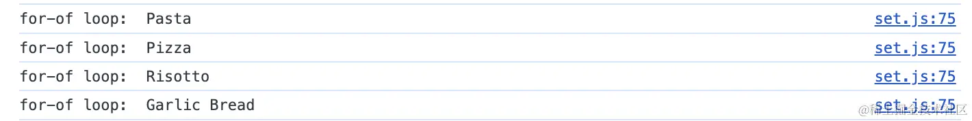 集合作为一种可迭代数据结构,当然可以通过for-of循环遍历集合中的每一个元素。例如遍历集合orderSet中的每个元素。