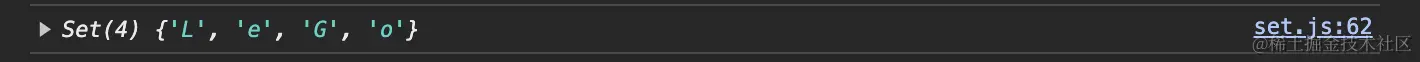 console.log(new Set('LeeGeo'));