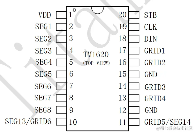 TM1620是一种LED(发光二极管显示器)驱动控制专用IC,内部集成有MCU数字接口、数据锁存