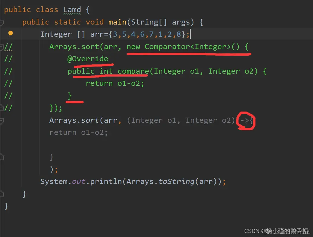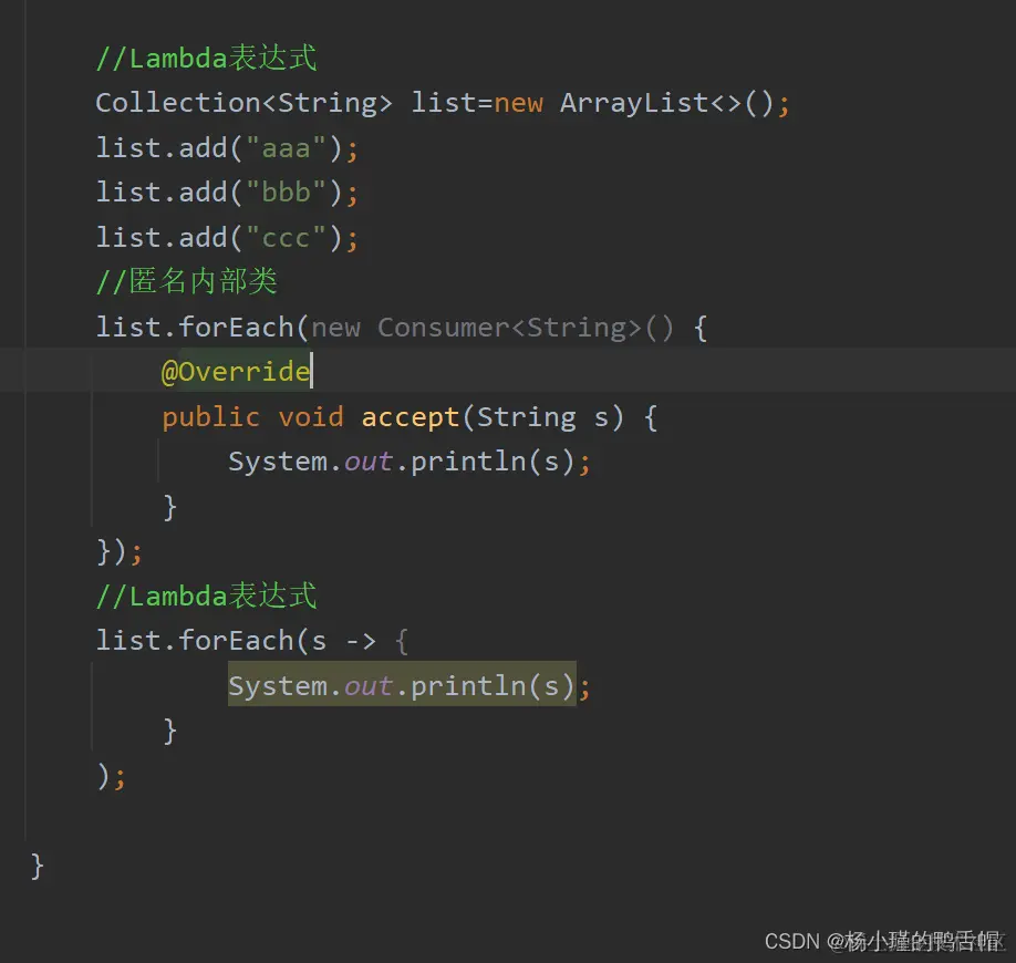 Lamdba表达式的好处:Lamdba是一个匿名函数,我们可以把他理解为是一串可传递的代码,它可以写出更加简洁,灵活的代码 。