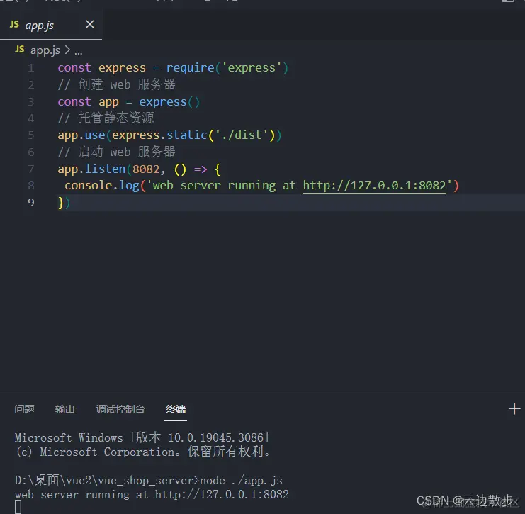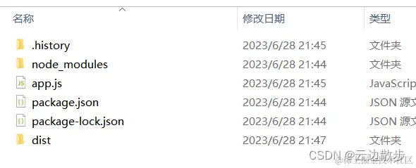 1.3.将项目打包好的dist文件放入其中以及新建一个app.js文件用于运行